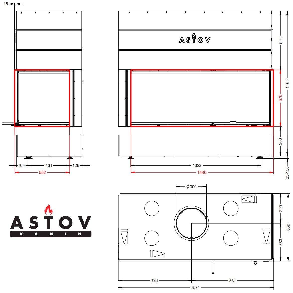 Каминная топка Astov П2С 14057