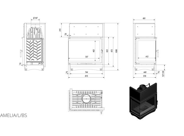 Каминная топка Kratki Amelia 25 L/BS