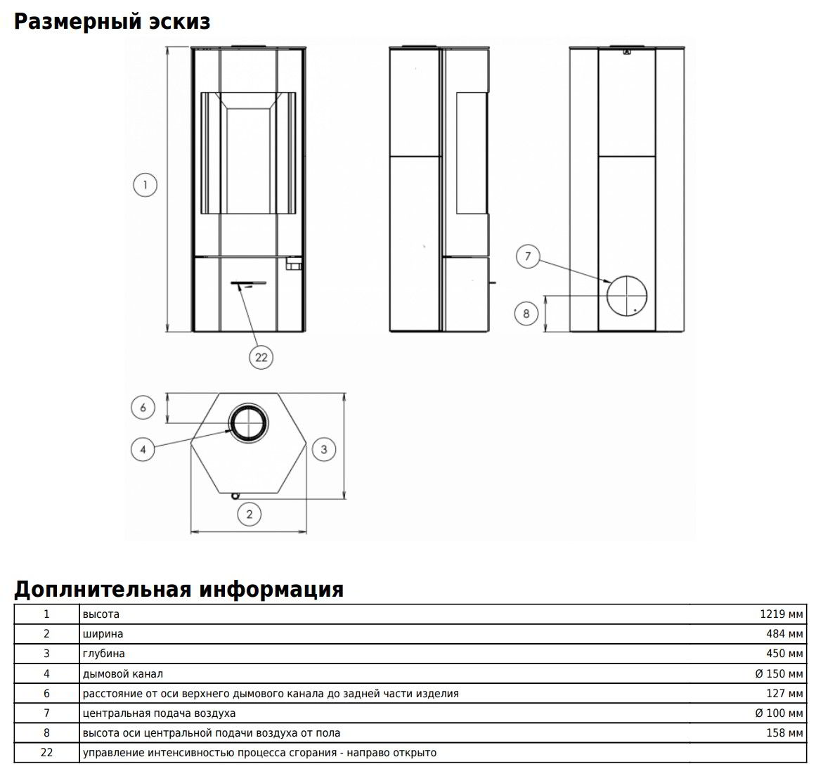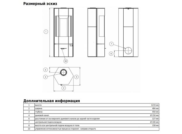 Диаметр дымохода: