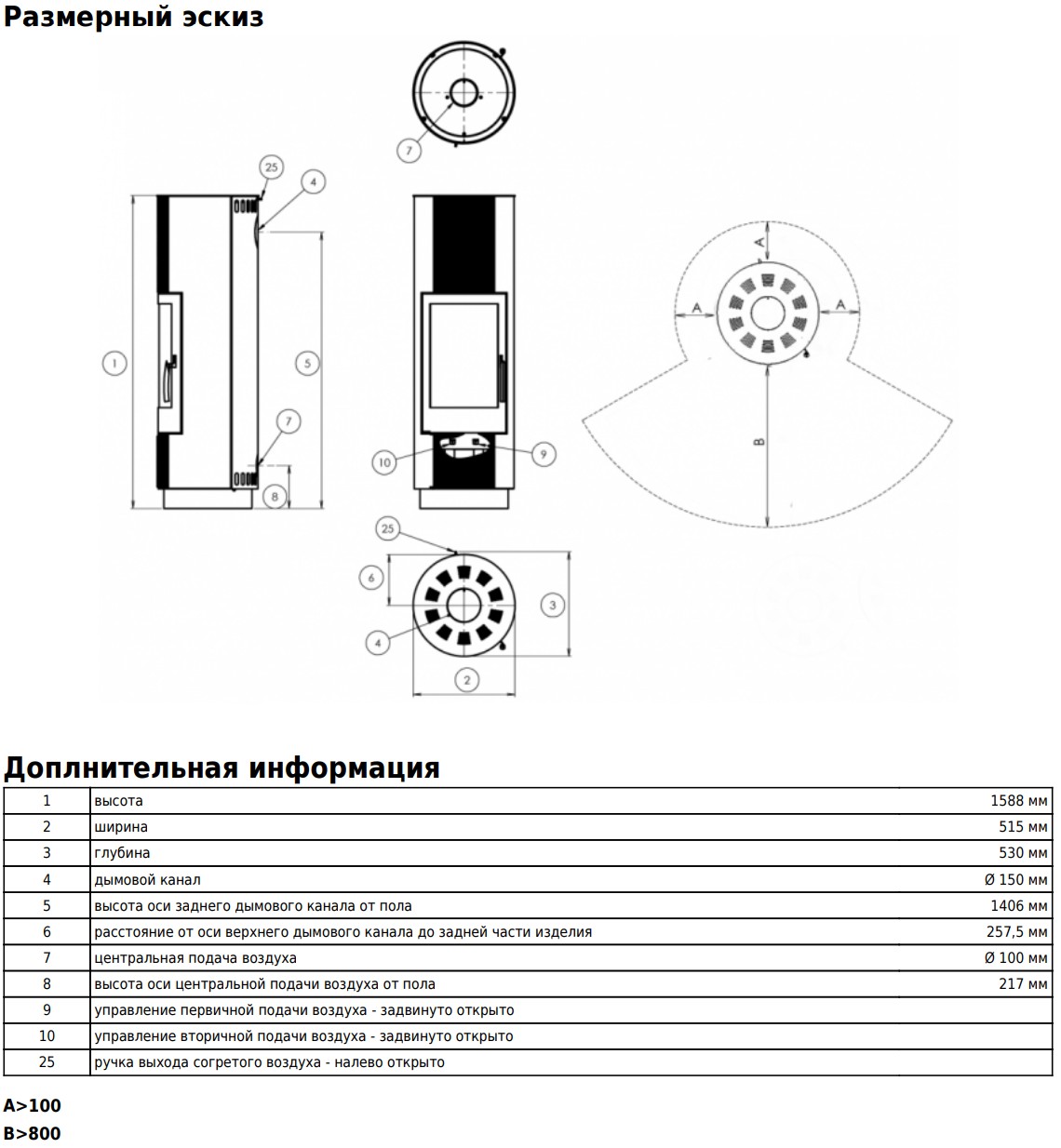 Диаметр дымохода: