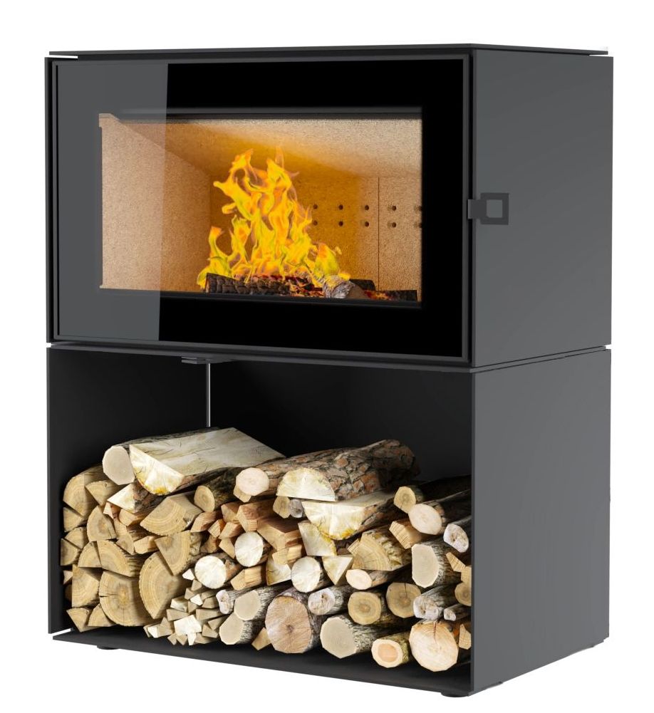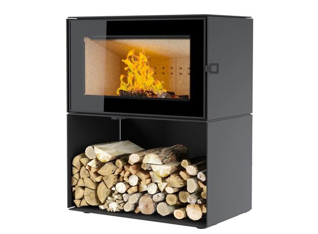 Печь-камин Astov КУБ 800 на дровнике