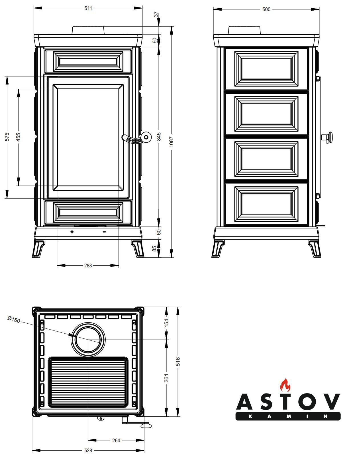 Печь-камин Astov Майолика Чёрная