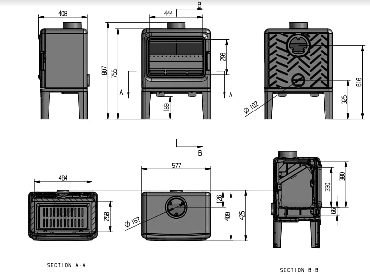 Печь-камин FireBird Leopard 9 на ножках