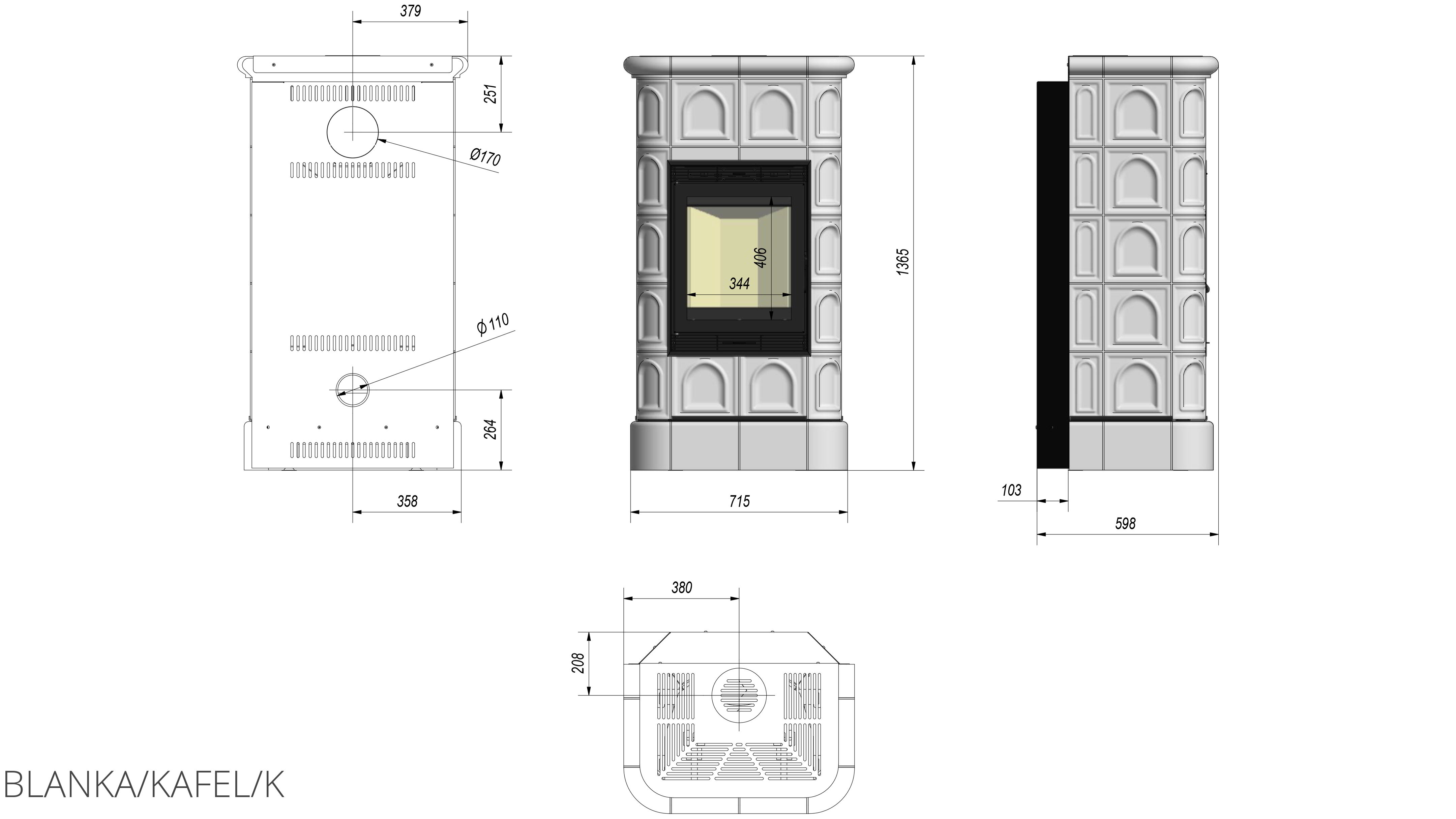 Печь-камин Kratki Blanka 8 kafel Cream