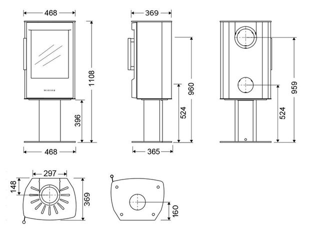 Мощность печи от 3 до 8 кВт позволяет легко и эффективно отопить площадь от 20 до 80м². Номинальная мощность — 5кВт дана производителем как средняя, в ней печь работает в оптимальном режиме и в максимальном КПД.